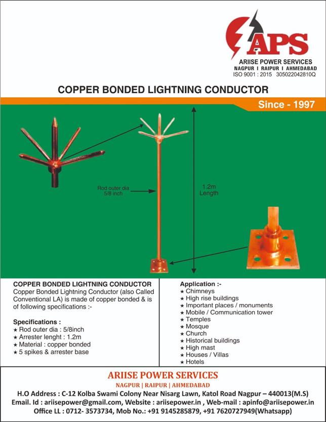 read more Conventional Copper Lightning Arrester A Conventional Lightning Rod (Spike Arrester) or lightning conductor is a metal rod or conductor mou